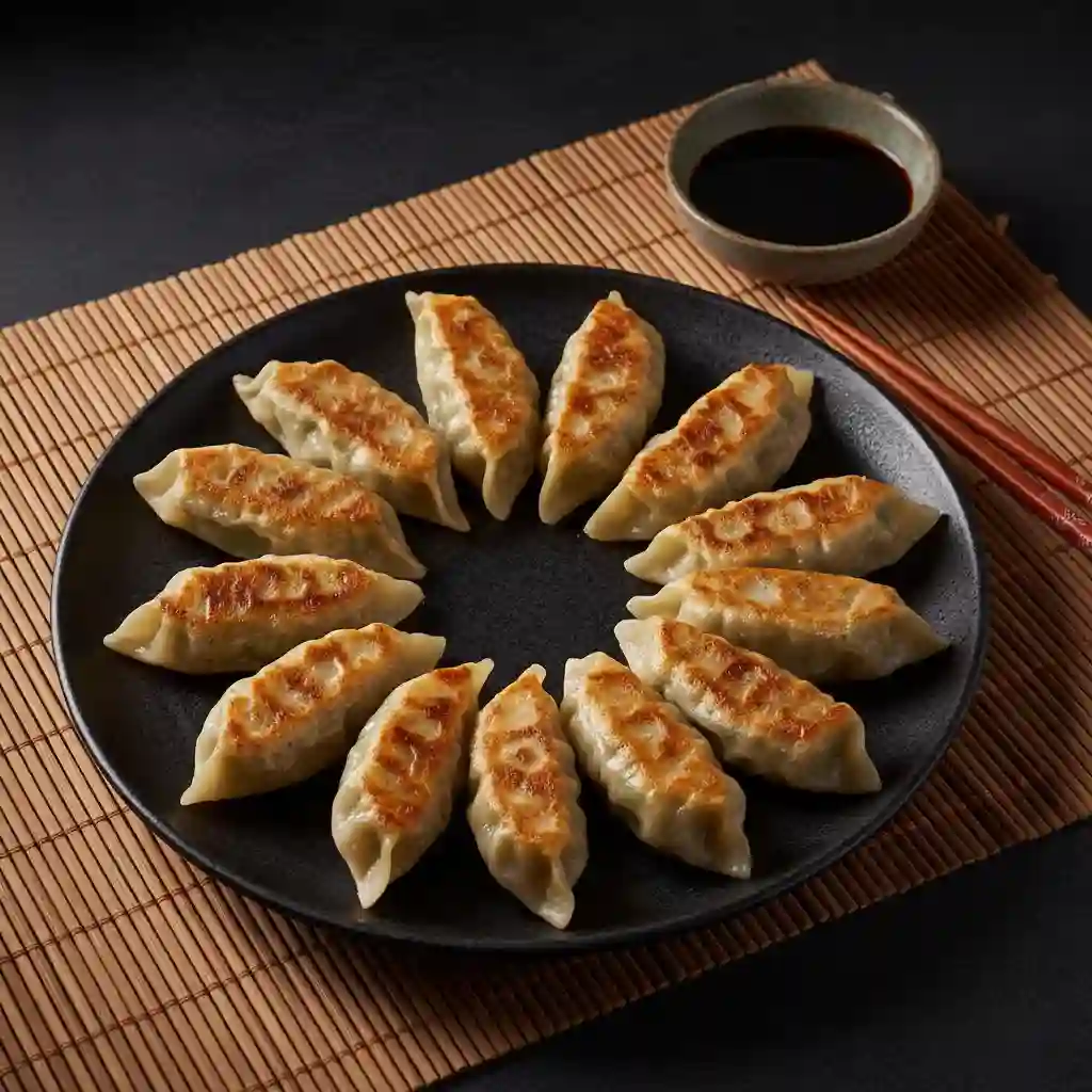 Savory vegetarian dumplings grilled to perfection, crispy outside, tender inside, packed with Asian flavor