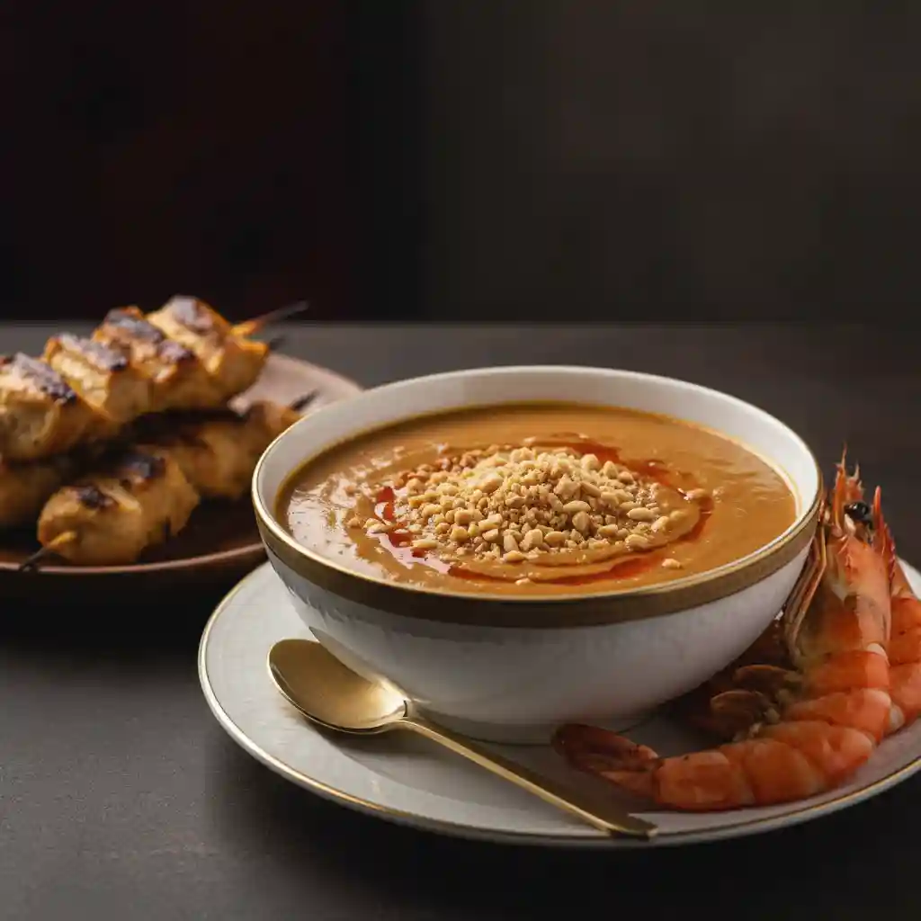 Creamy peanut satay sauce, nutty, aromatic, and mildly spiced